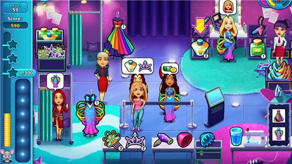 • Guide her through every challenge—designing, styling, and managing her way to the top!