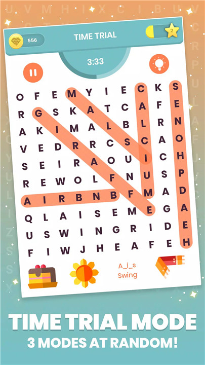 4. Time Trial: An exhilarating, infinite mode where you race against the clock to find words across all categories without a specific theme. Quick thinking is key!