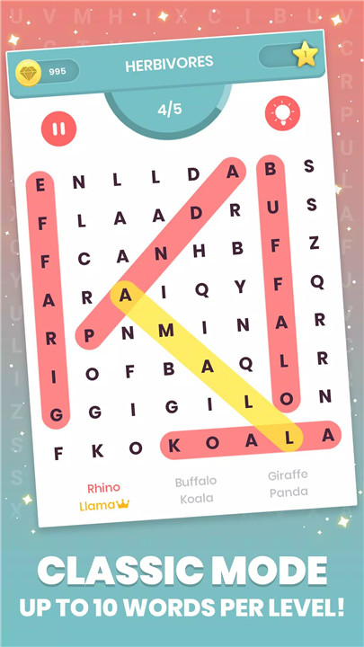1. Classic: The original mode where you search for words from a provided list within a grid. Perfect for beginners!