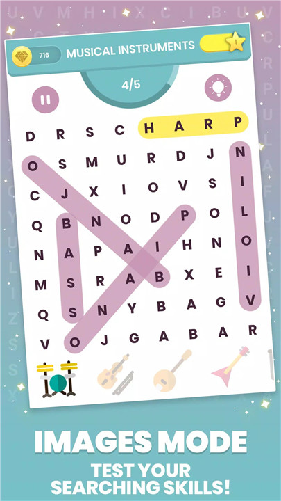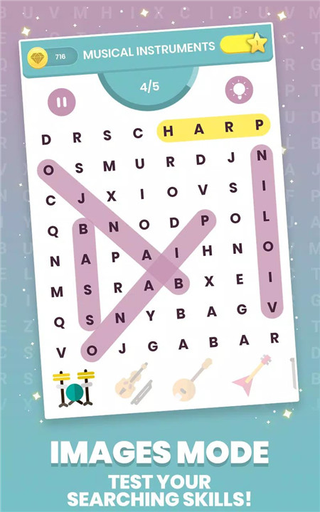 3. Images: Search for words using visual clues. This unique approach enhances the puzzle-solving experience and is perfect for visual learners.