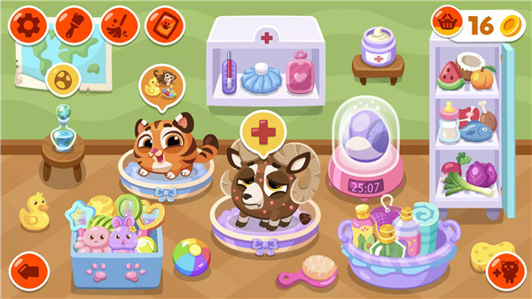 Bubbu School introduces essential learning concepts in an enjoyable way. Activities include practicing the alphabet, writing letters, and learning basic English words. Math exercises cover multiplication, addition, subtraction, and division with adjustable difficulty levels. Geometric shapes and logic challenges further support early cognitive development, making school-themed activities entertaining and interactive.