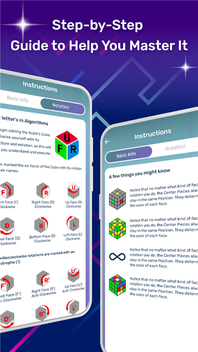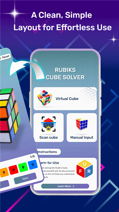 • Scan your cube, follow the guided solution, and master it in minutes.