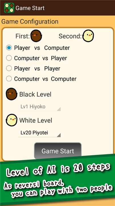 Reversi Game. You play with Cute Chicks It's High Functionality, AI is authentic Download the latest version of PiyoReversi to enjoy new features and updates immediately!