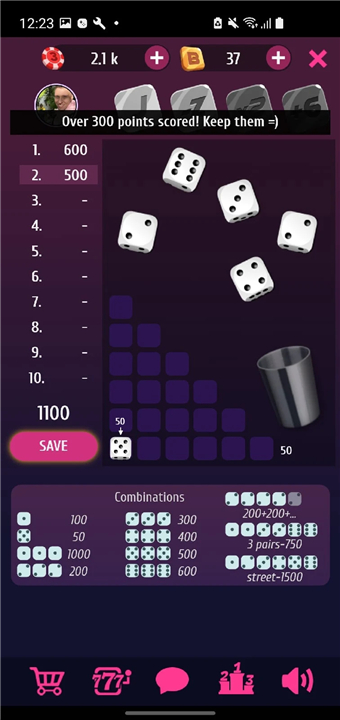 Throw the dice and collect combinations, take risks playing board games, win! Download the latest version of Farkle Pro - 10000 dice game to enjoy new features and updates immediately!