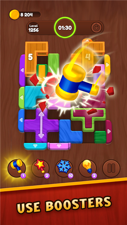 A: The gameplay revolves around directing wooden blocks across a board by swiping in any direction. Your primary task is to guide each uniquely colored piece toward its matching destination, ensuring that you navigate around other blocks and environmental obstacles that might be in your way.