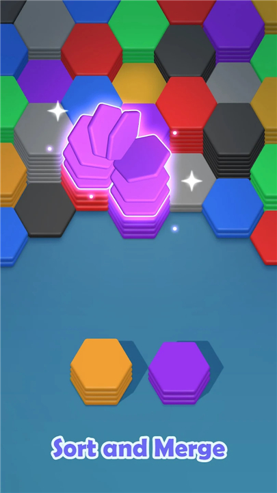 • To play, simply sort, stack, and match hexagon tiles by color to create the perfect puzzle solution.