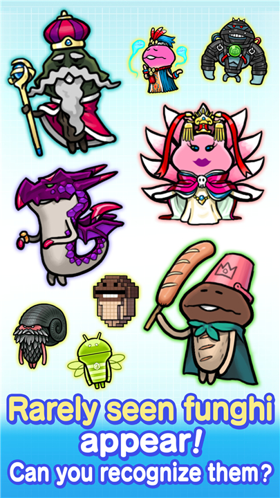 • This free-to-play app challenges you to put your Funghi knowledge to the test, explore unique facts about countless mushroom characters, and build your own virtual collection of Funghi cards.