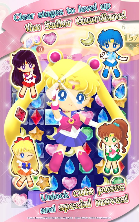 Character Abilities: Each Sailor Guardian has a special ability that can help you during gameplay, such as clearing rows of gems, creating explosive effects, or generating power-ups. Strategically use these abilities to overcome challenging levels and achieve victory.