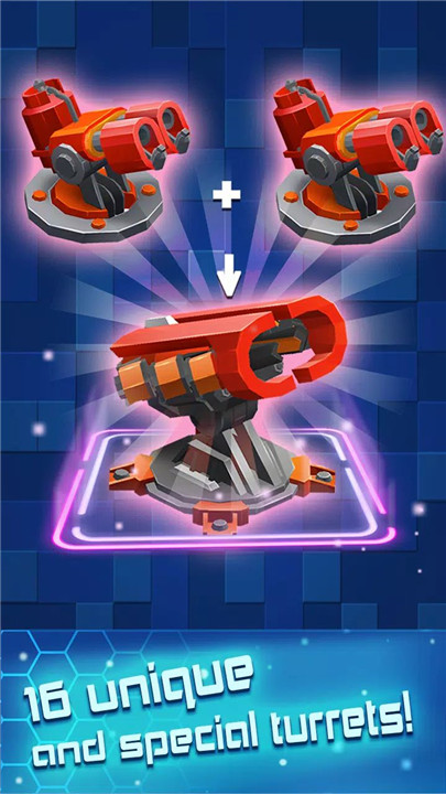 Turret Merging: Merge identical turrets to upgrade their capabilities and strengthen your defenses against incoming waves.