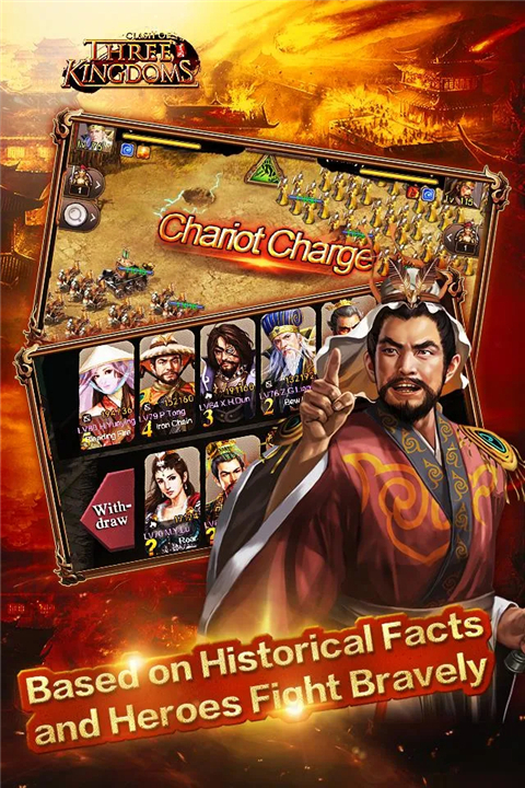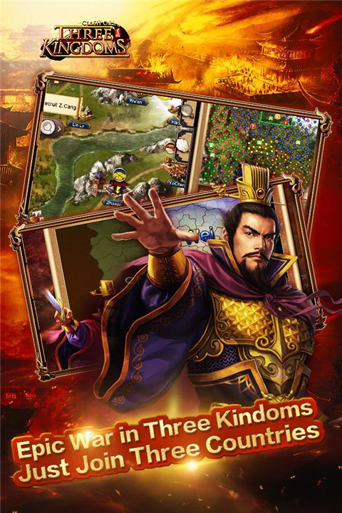 • Clash of Three Kingdoms is an epic real-time strategy competition game.