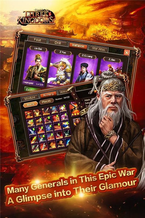 • Legendary Heroes: Recruit and train iconic generals and strategists from the Three Kingdoms era, each with unique abilities for tactical deployment and powerful skill sets that can turn the tide of any battle.