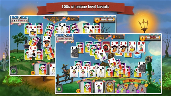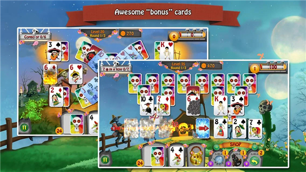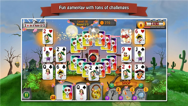 • Test your skills in a unique solitaire format, where each level presents new puzzles and obstacles.