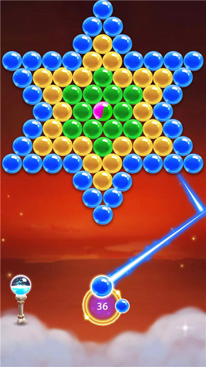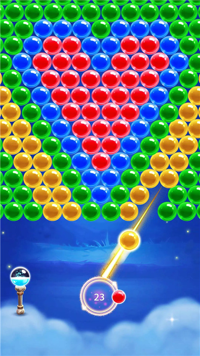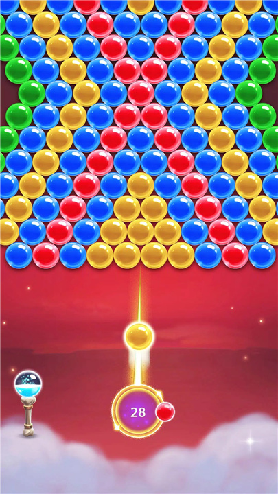 Use your finger to aim the bubble launcher and tap to shoot bubbles at the cluster of bubbles above. Match three or more bubbles of the same color to pop them and clear them from the board. Strategize your shots to create chain reactions and clear larger groups of bubbles with fewer shots.