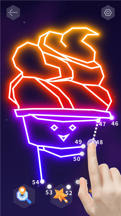 A: Playing Dot It is straightforward. You simply tap or drag your finger across the screen to connect the dots in numerical order. As you connect the dots, the scattered points slowly transform into a stunning glowing picture.