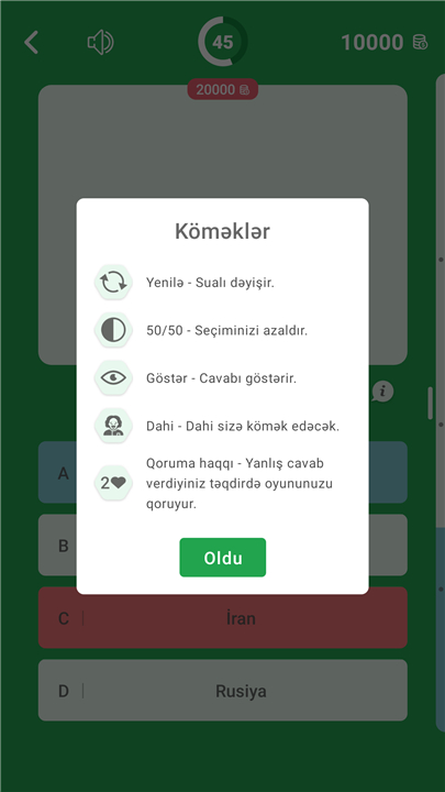 • Ability to switch easily between related “Millionaire” series games, including topics such as World History, Azerbaijani Language & Literature, Religious Studies, Traffic Rules, and more