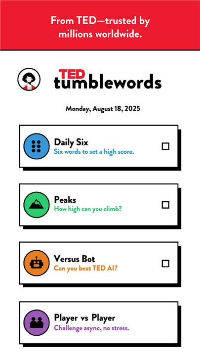 Download TED Tumblewords today to discover the perfect intersection of vocabulary building, spatial logic, and fascinating trivia.