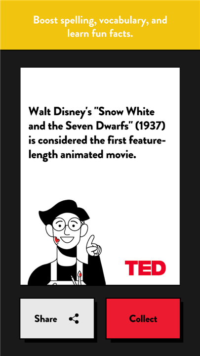 • Collectible Fact Cards: As you progress, you unlock digital cards packed with intriguing trivia sourced from TED’s archives, covering psychology, science, design, and global culture.