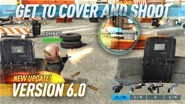 • Unlock an extensive range of armaments: pistols, sniper rifles, shotguns, and anti-tank launchers.