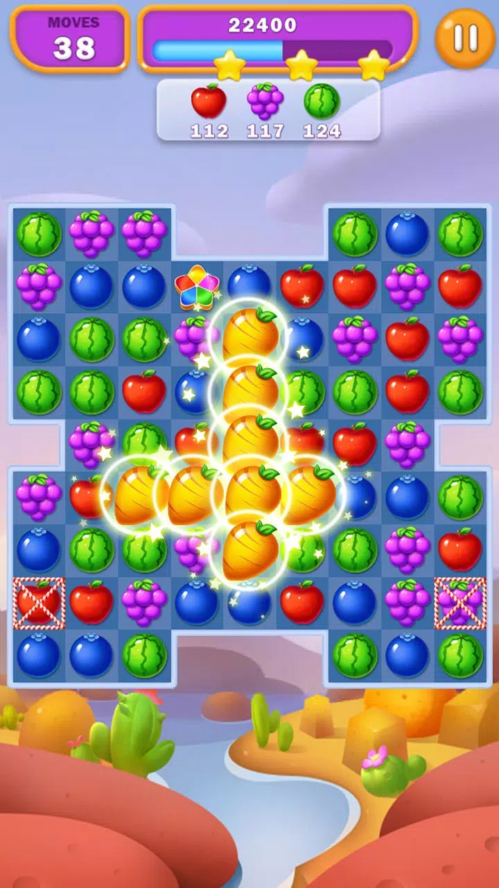 ✓ Match-3 Gameplay: Enjoy classic match-3 mechanics where you swap and match fruits to create explosive combos and clear the board.