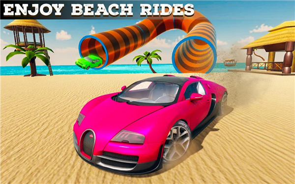 • Test your driving skills by performing impossible flips and jumps across the beach ramps.