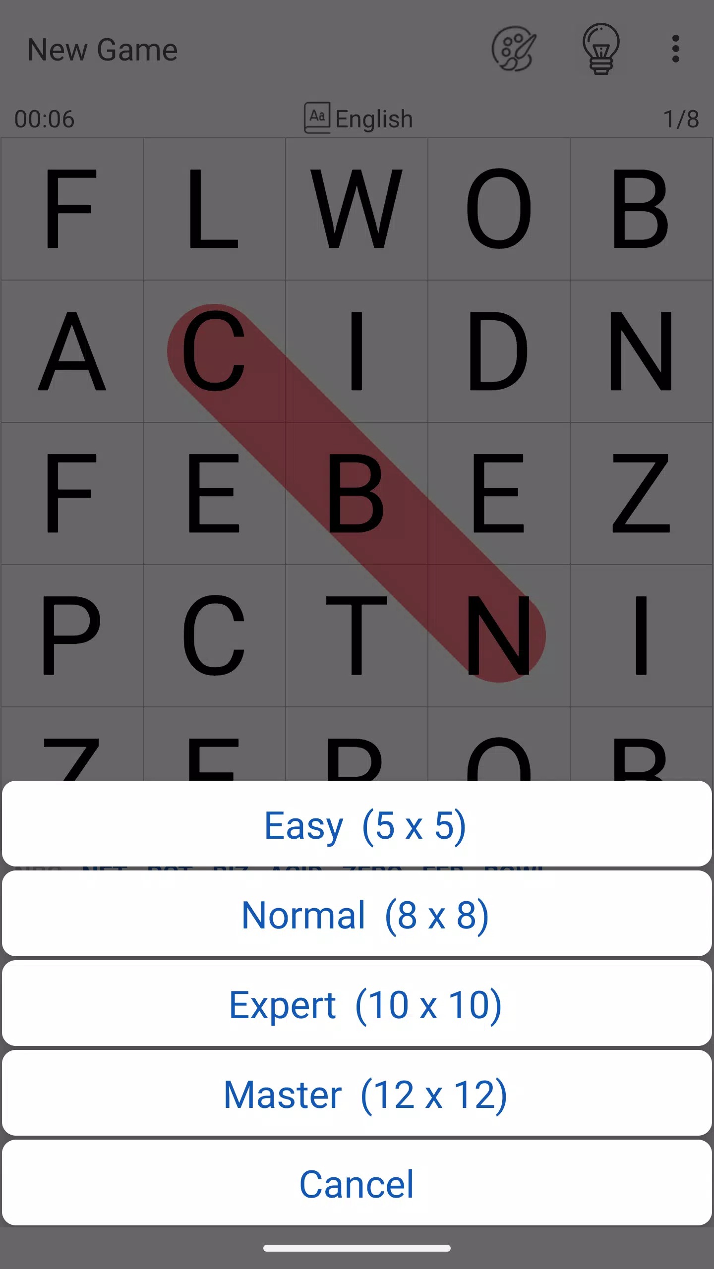 ★ Customizable Difficulty: Adjust the difficulty level of each puzzle by selecting the grid size and word length, ranging from small grids with simple words to larger grids with longer and more challenging words.