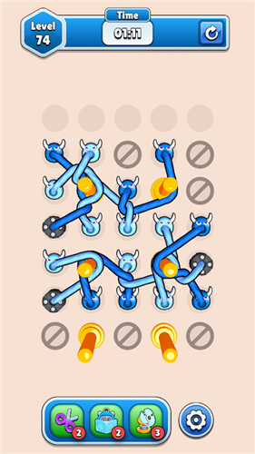 Your goal is to untangle complex knots by manipulating pins strategically.
