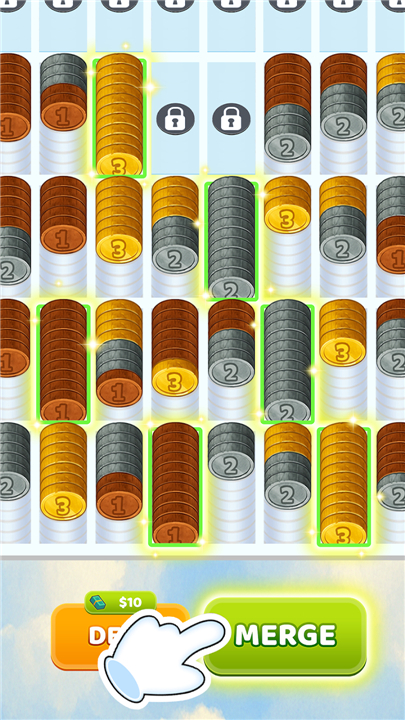 • This captivating puzzle game invites you to dive into an arcade-style challenge: sort and merge coins to clear the board and claim your mastery.