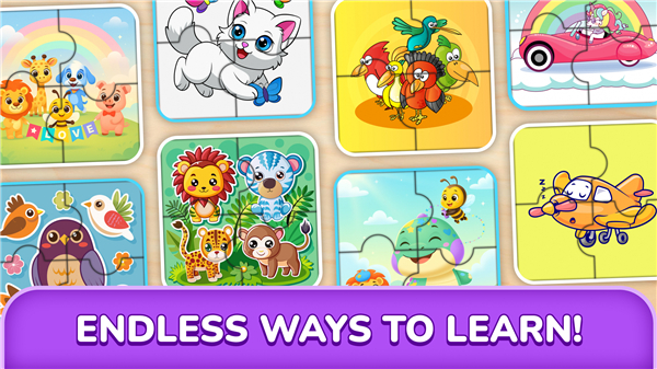 A: The app features a vast universe of beautifully illustrated puzzles covering diverse topics such as animals, vehicles, fruits, and toys. Children can also learn about nature, shapes, and everyday wonders, ensuring there is something to capture every unique imagination.