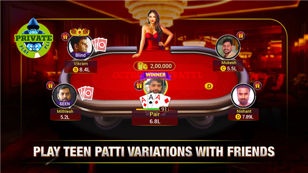 • Engage in the mystical Teen Patti Battle or test your endurance in 15-hand 6 Patti tournaments.