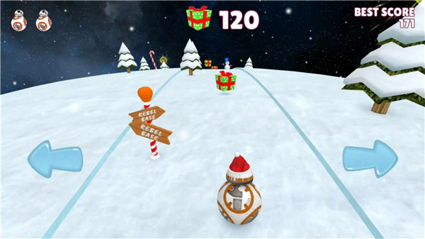 + Players control BB-8’s direction and speed, navigating through winter terrain filled with festive yet challenging obstacles.