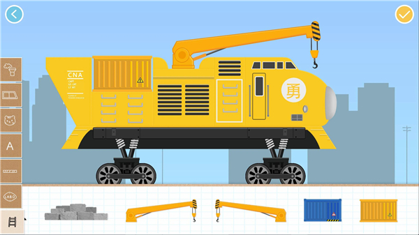 A: Children can assemble trains using colorful digital bricks, snapping pieces together much like in a puzzle. They can start with one of over sixty ready-made locomotive templates or create entirely original designs from scratch. Once built, the trains come to life and can run on the rails.