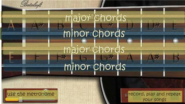 • Complete library of major and minor chords, arranged neatly on the fretboard.