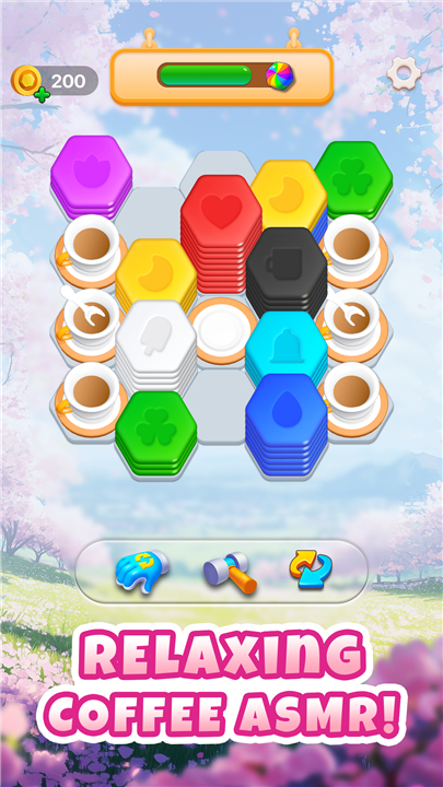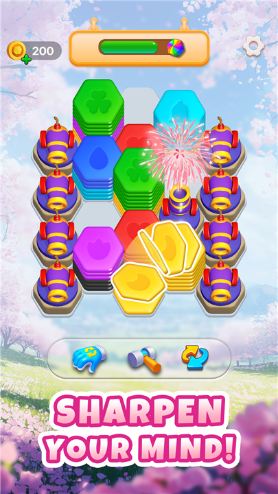 • Step into a colorful, interactive space where your mission is to sort and merge hexagon blocks.