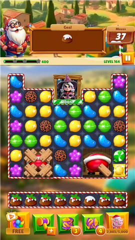 Each level has a specific task where you need to match a certain amount of specific candies (candy) to advance to the next level. Note that your movement is limited, and having a few boosters and power-ups may come in handy in case you get stuck.