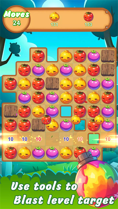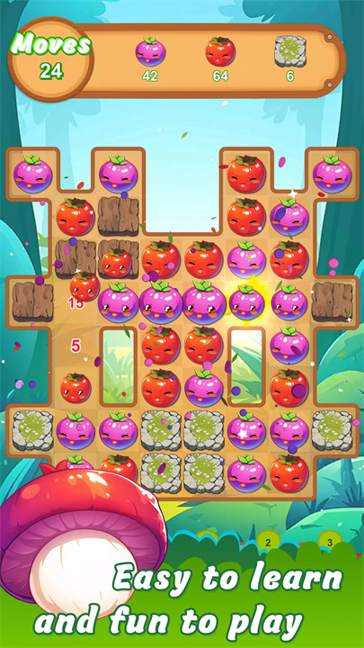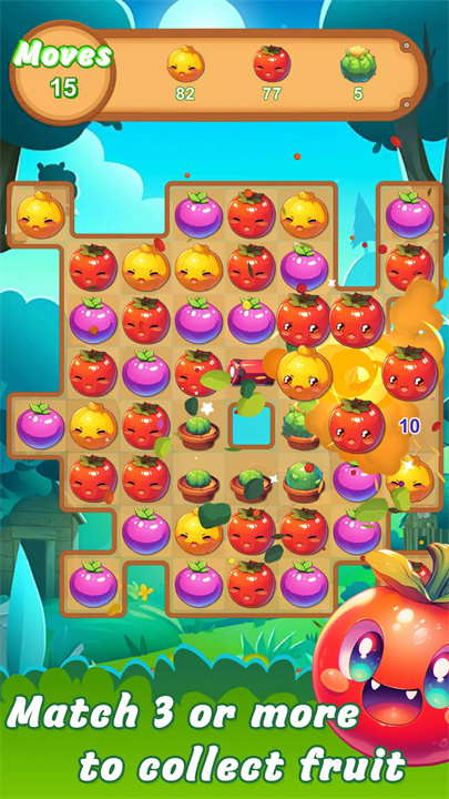 [花园爆破达人]是一款充满色彩和创意的水果主题三消益智游戏,它为玩家提供了数百个充满挑战的关卡,让您在一个美丽而富有趣味的花园中体验刺激的水果冒险。在游戏中,玩家的目标是通过交换和匹配相同的水果,消除它们并获得高分,每当三个或更多相同的水果按行或列排列时,它们就会被消除。收集、匹配、爆破——畅享充满水果的精彩冒险!
