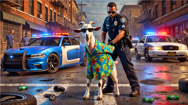 • Whether you're headbutting unsuspecting pedestrians, hijacking vehicles, or pulling off ridiculous stunts, your goat’s antics will leave the city in shambles—and players in stitches.
