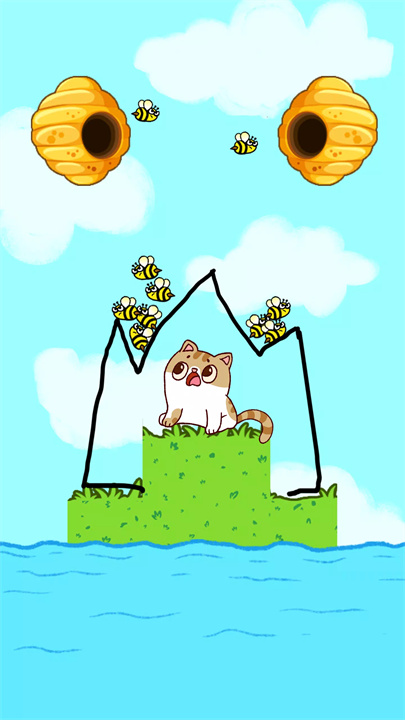 Just touch and drag on the screen to draw protective shapes around the cat. The goal is to keep him safe from the bees.