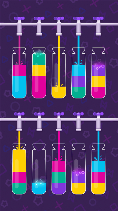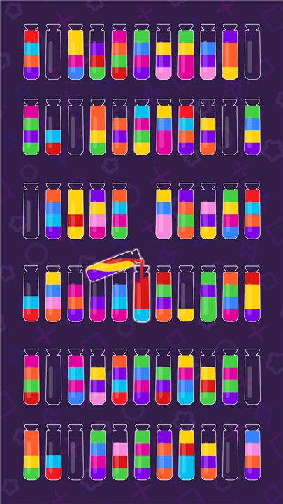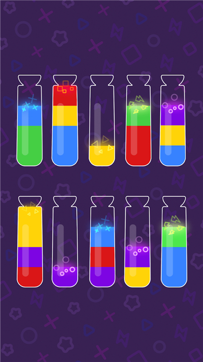 A: Playing Sortago is simple and intuitive. You're presented with a series of test tubes containing mixed colored liquids. Your goal is to sort the liquids so that each tube holds a single, complete color. You do this by pouring liquid from one tube to another—only when the top color matches or the receiving tube is empty. The challenge grows as tubes fill up, colors mix, and strategic planning becomes essential.