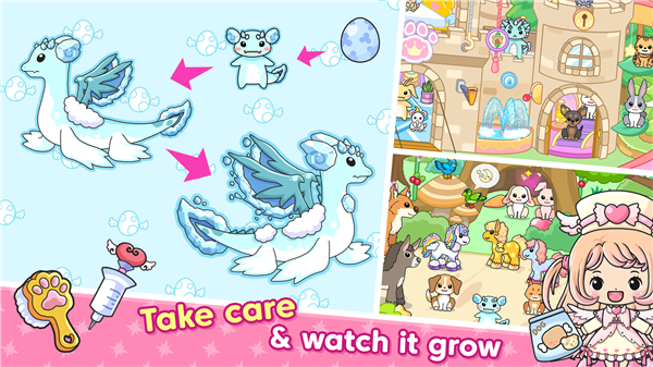 • More than 100 pets to care for, from playful cats to majestic unicorns