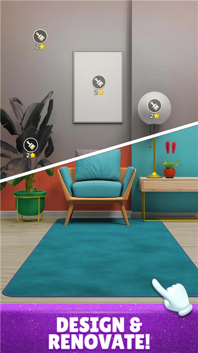 • Complete design tasks using coins and stars obtained from solving puzzles.