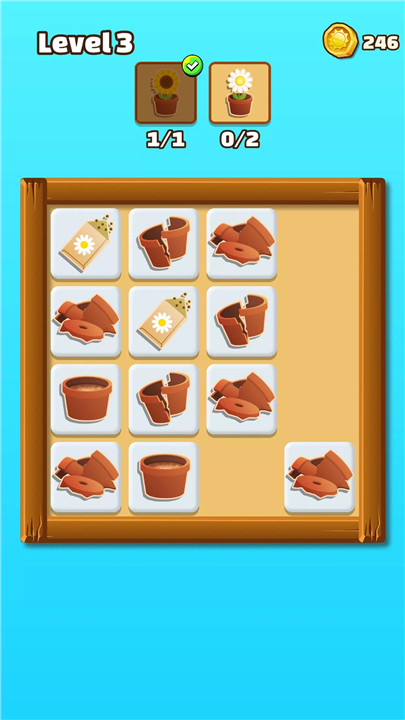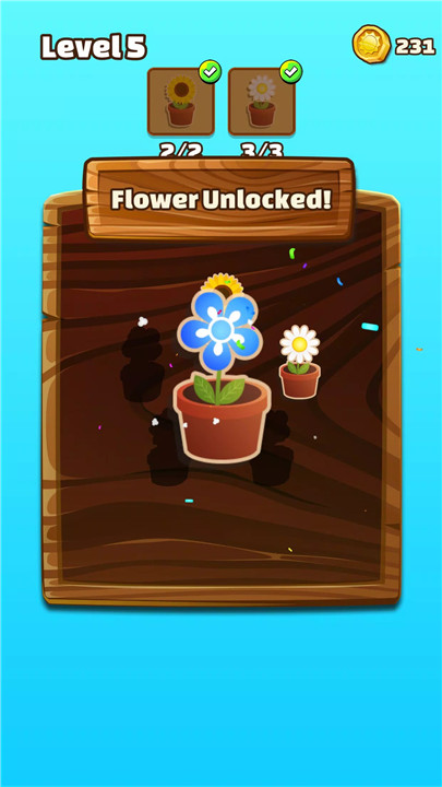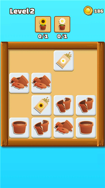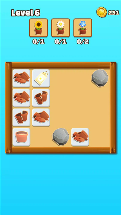Swipe to move the flower pots across the grid and merge identical pots to create new varieties of flowers. Match pots with the same flower type to combine them and unlock higher-level blooms.