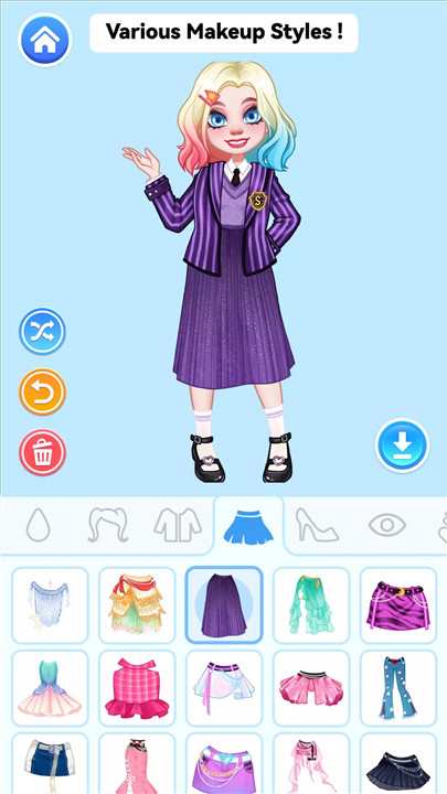 Explore a vast collection of fashion items spanning American street style, cyberpunk aesthetics, and classic princess attire. You can also choose a cute pet and your favorite background to create a sweet photo. Add a personal touch with custom bubbles to express your thoughts and showcase your design skills as a doll fashion designer.