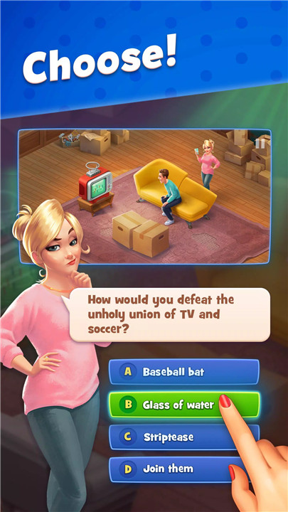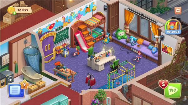 Earn stars by solving color-matching puzzles. Combine three or more elements to reach goals, create special items, and earn higher scores through combos. Use these stars to make meaningful changes to your home and unlock new areas. If you run out of moves, simply replay levels until you succeed.