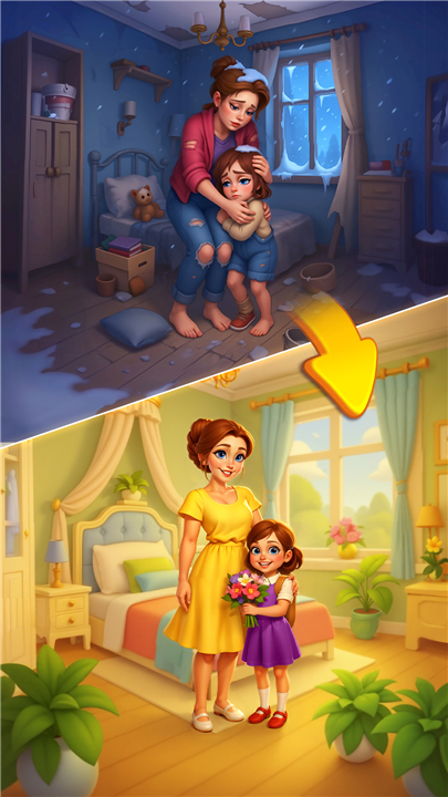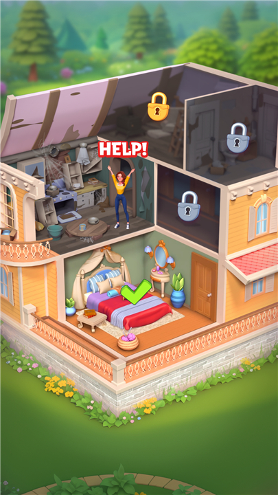 A: Expect to tackle everything from squeaky floorboards and crumbling walls to outdated wallpaper and crooked curtain rods. Each room in the manor has its own set of problems and renovation tasks. You’ll merge components to craft paint cans, fixtures, and tiles, then apply them creatively to transform dusty hallways into grand vestibules and peeling bathrooms into spa retreats.