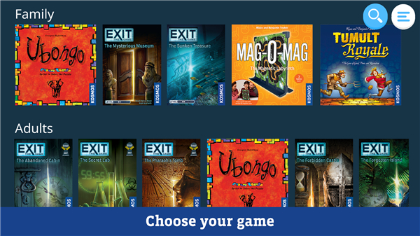 A: The app currently offers support for several popular KOSMOS titles, including Ubongo, Tumult Royale, Imhotep, and the multi-award-nominated EXIT series, as well as games recognized by Spiel des Jahres and Kennerspiel des Jahres.