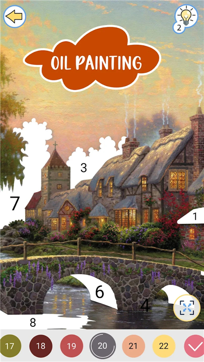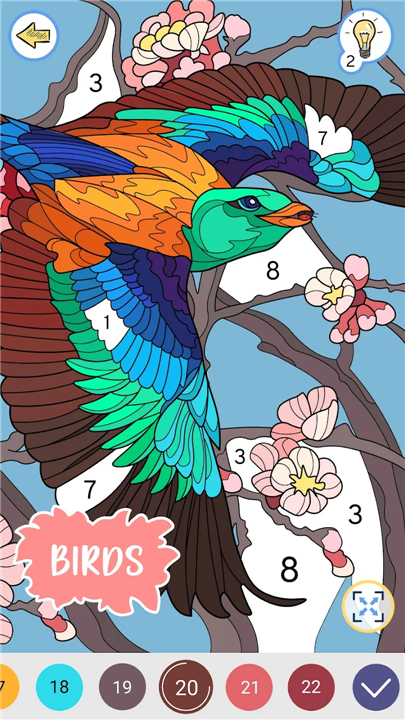 A: Each cell in the illustration is marked with a small number corresponding to a color in the palette bar at the bottom of your screen. When you select a palette number, all cells of that number will highlight, guiding your eye and ensuring you never miss a spot. This system balances ease and focus, allowing you to concentrate on the soothing act of coloring rather than hunting for the right shade.