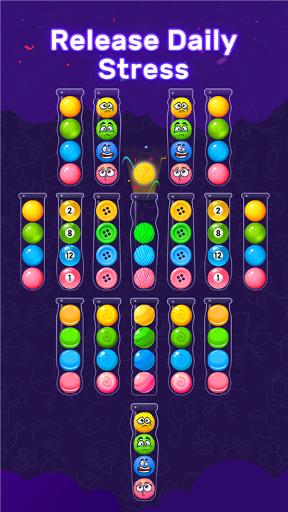 A: The gameplay is intuitive and elegant, allowing you to start by tapping any bottle to select the top-most sphere. You then transfer that ball to another bottle, provided the colors match or the destination container is currently empty, allowing you to gradually organize the mess into a harmonious collection.