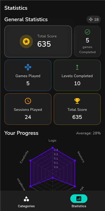 A: Brain Buddy targets six distinct cognitive categories! These include Memory Retention, Sustained Attention, Logical Reasoning, Processing Speed, Mental Flexibility, and Problem Solving. Each category features specialized mini-games and tasks to stimulate different neural networks within your brain.