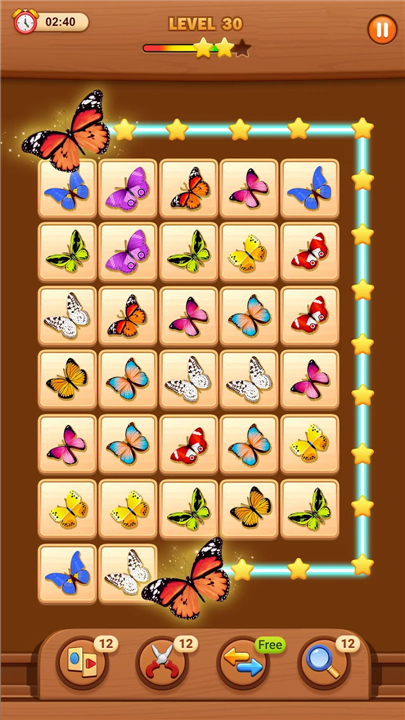 A: Each level presents a grid of face-down tiles. Your goal is to match two identical tiles by linking them with a line that changes direction no more than three times. Once the pair is connected, they disappear and you continue until the board is clear. You’ll need to finish all matches before the countdown ends, so observe the board carefully, plan your links, and use your time wisely.