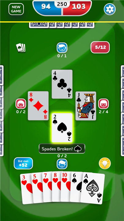 • Partner up, plan your bids, and outplay your opponents to win tricks and reach 250 points first.